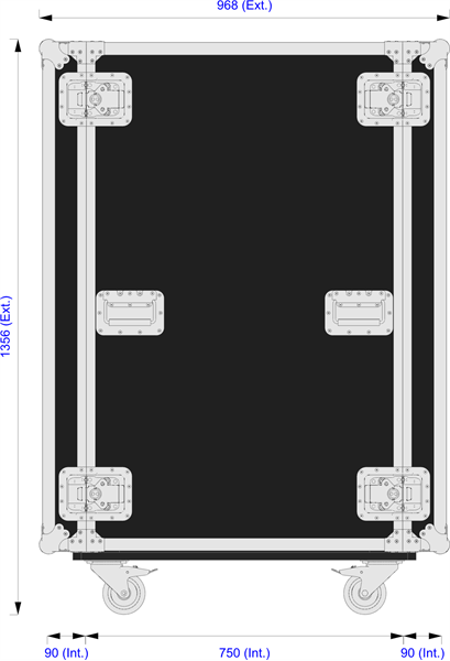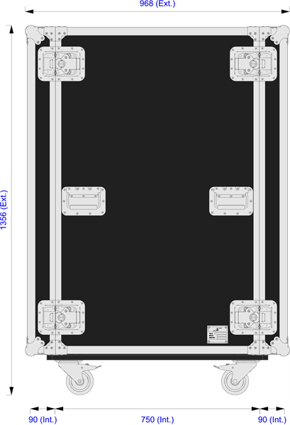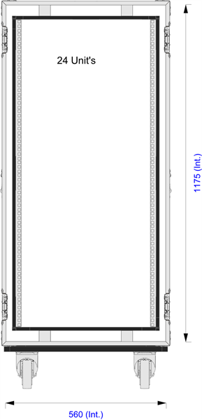 24U Shock Mounted Rack - 750mm Rack Pitch, Table Legs in Door
