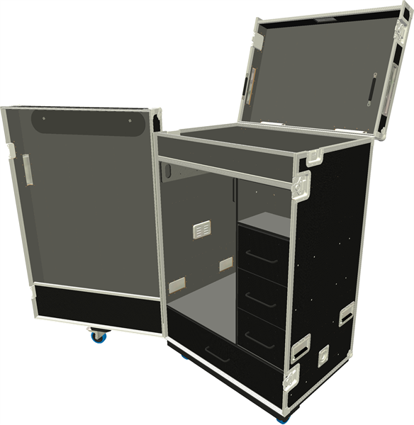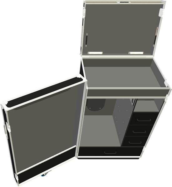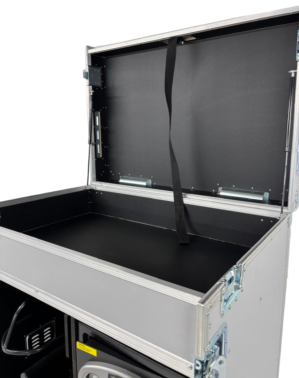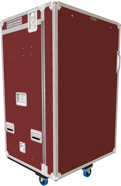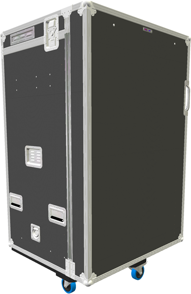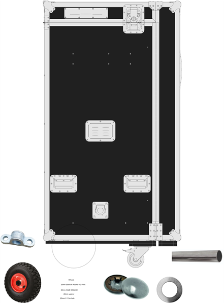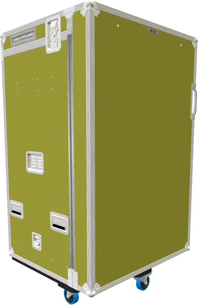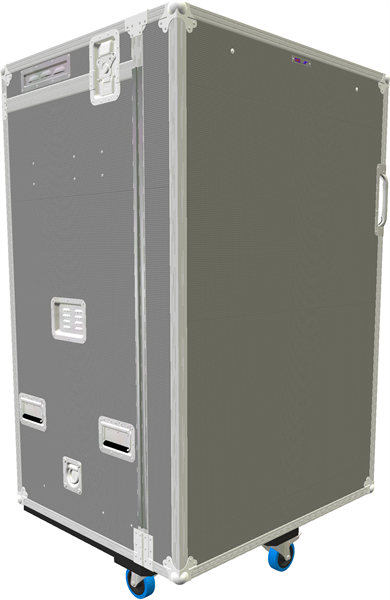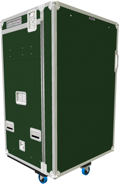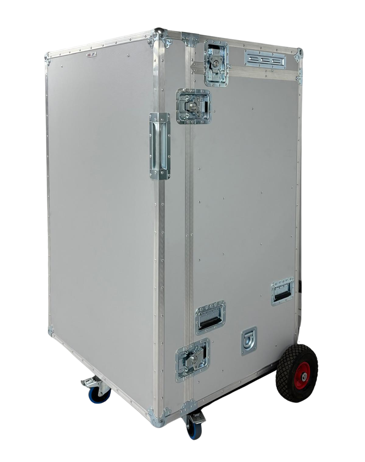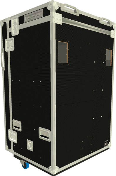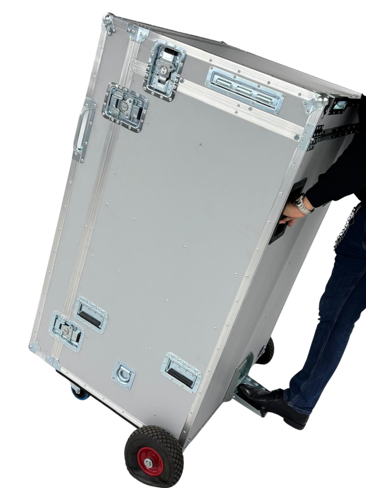 The exterior of the case is fitted with vents to allow airflow, and handles all around to allow easy manoeuvrability. A large folding step at the rear, along with two pneumatic wheels, allow the case to easily be tilted backwards if required and pulled along with ease. This is perfect for heavily muddy environments where the smaller castors may struggle.