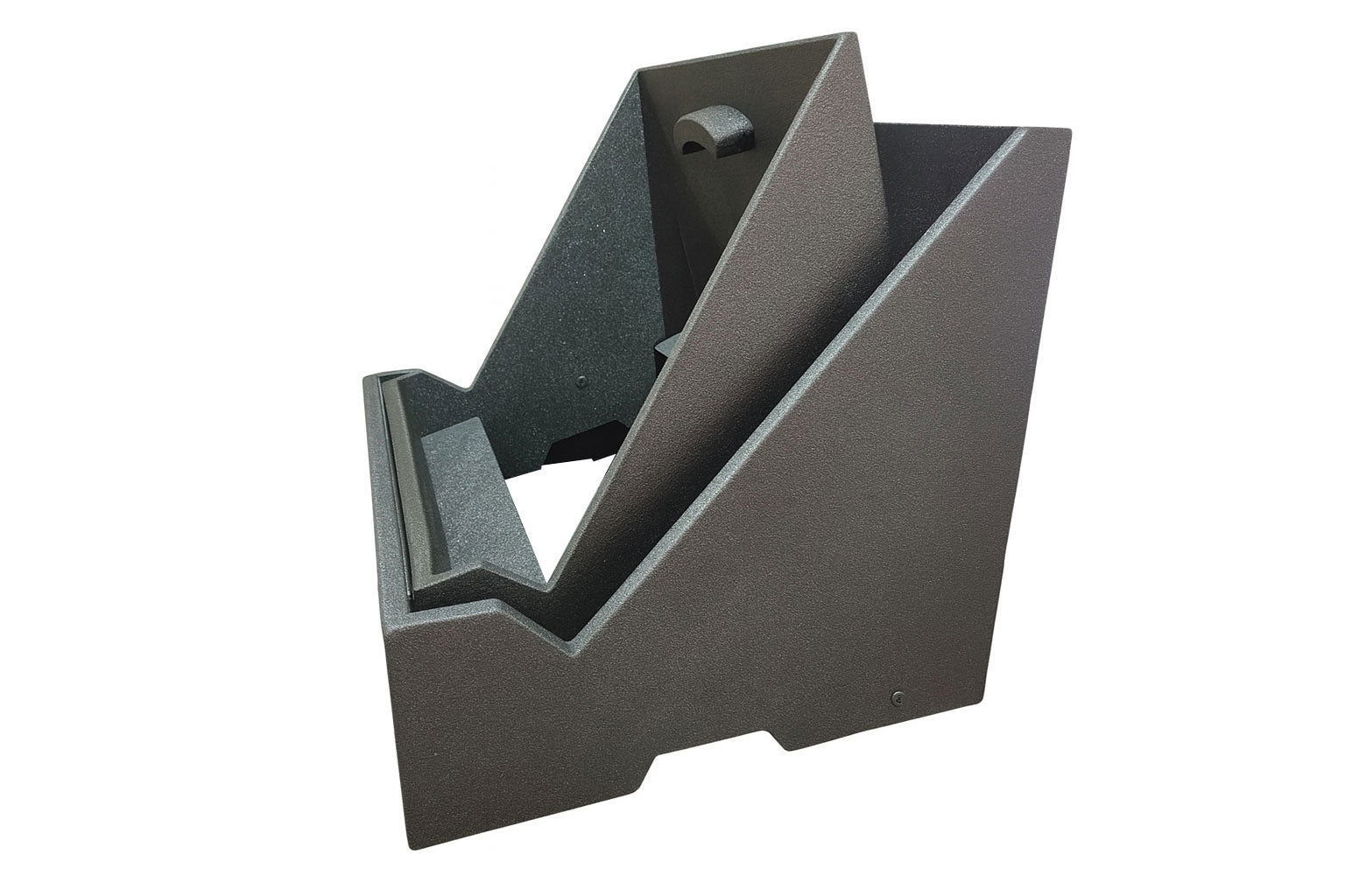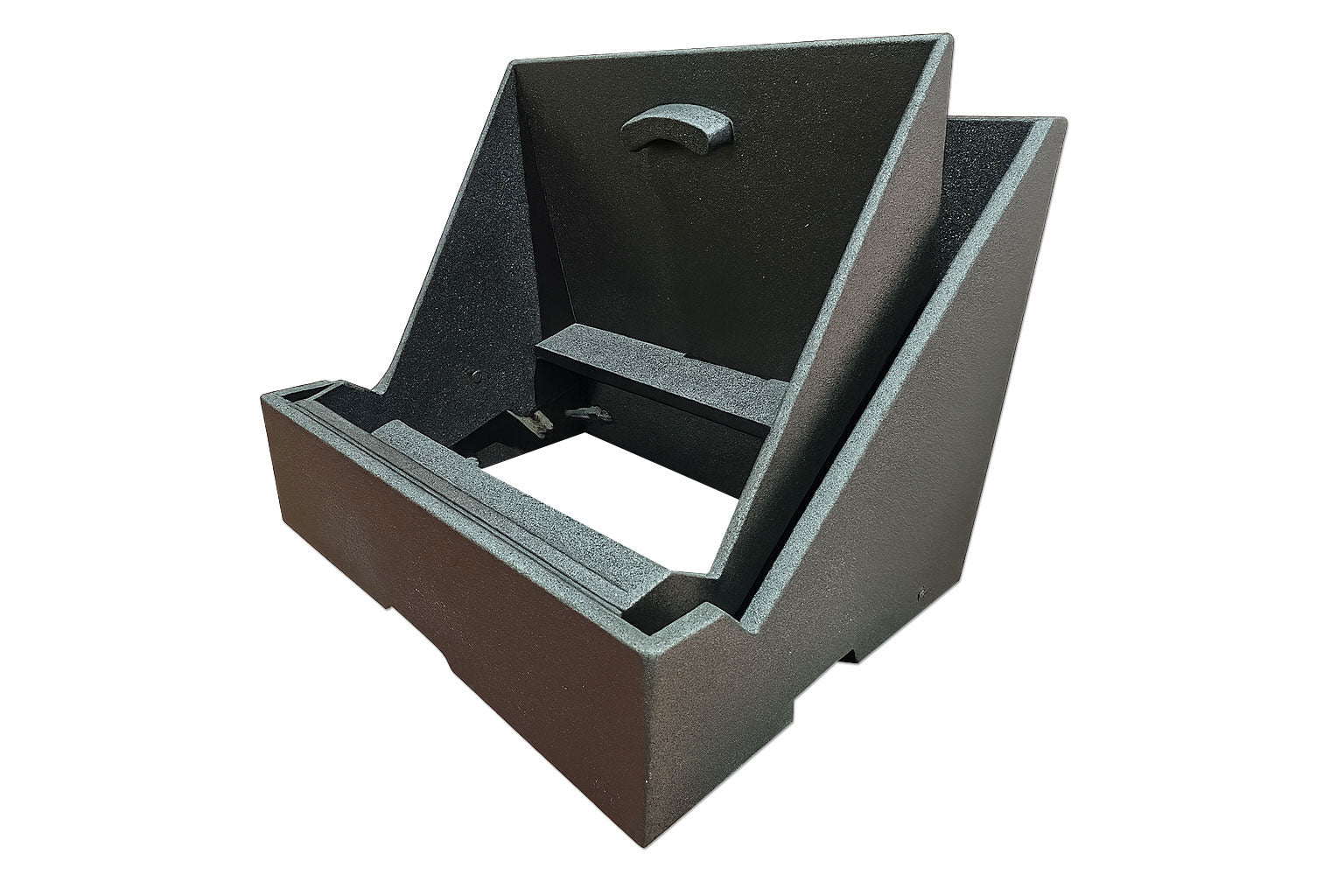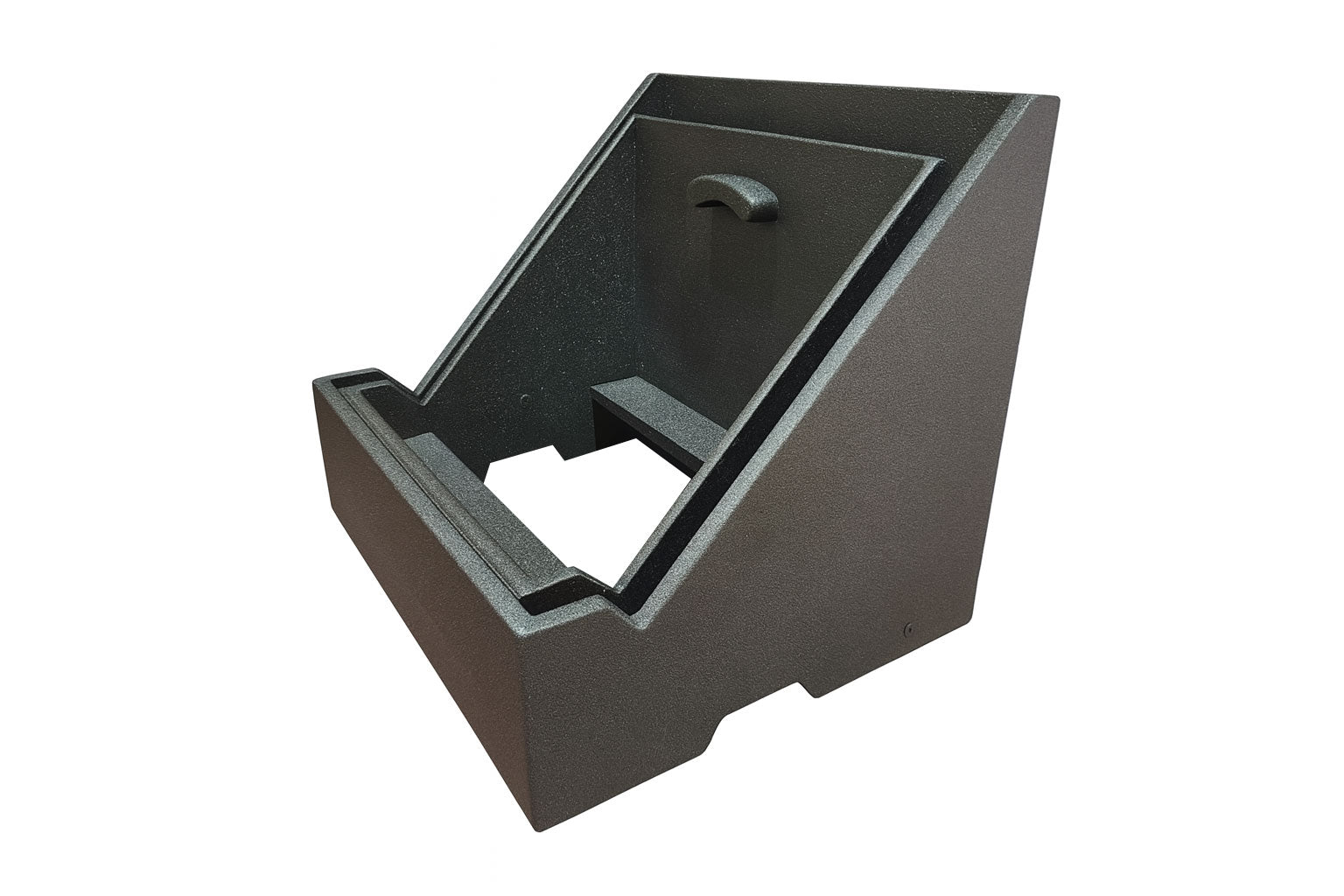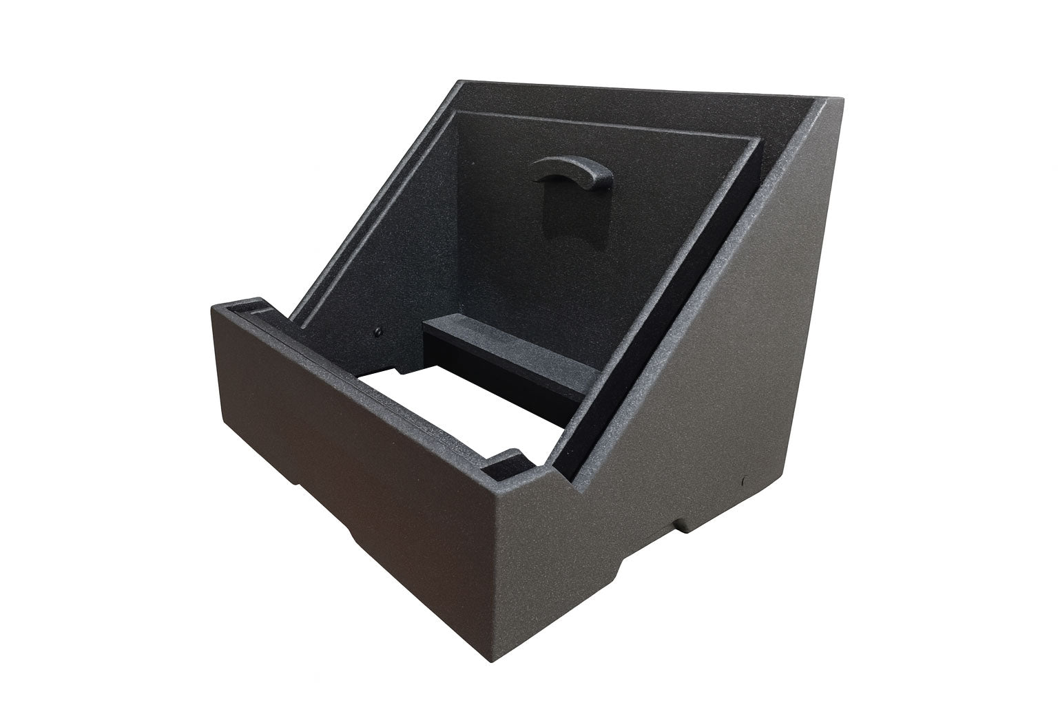 This monitor hide is adjustable, allowing it to be set a certain angle for the monitor to fit into.