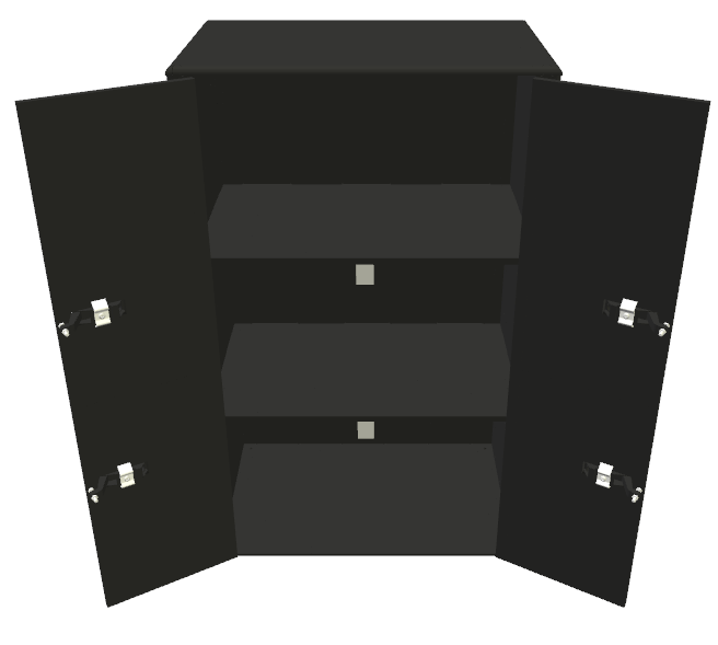 Featuring 2x hinged doors, this cupboard has 2x shelves and is designed to hold up to 6x boxes of A4 printer paper. The cupboard is available in one of 3x different finishes, including a plain plywood finish, a black painted finish, or a hard wearing and water resistant black painted polyurea coating.
