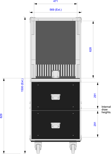 External Height (including castors): 1500 mm